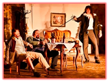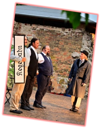 Drei männliche Honorationen aus Kyritz wollen es einmal so richtigin Berlin “krachen” lassen und inszenieren einen großen Schwindelum dort hin zu kommen. Doch ihre Frauen entdeckten den Betrug, reisen ihren Männern hinterher und quartieren sich im selben Hotel wie sie ein.Zu allem Übel sind aber auch dort drei heiratswütige Männer aus Pyritzeingetroffen .... und aus dem Wortspiel “Kyritz - Pyritz” entstehen dieunmöglichsten Verwechslungen, die zur großen Belustigung derZuschauer nur mit Mühe aufgelöst werden ...Die Knattermimen entdeckten diese fast vergessene Posse aus dem Jahr1872 und holten sie zurück - dort wo sie auch hingehört:Nach Kyritz an der Knatter!!!!!
