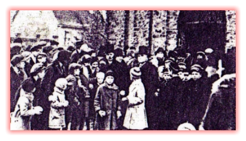 Rundstücken. Nach dem Gottesdienst, vor der Kirche versammelte sich die gesamte Bevölkerung.