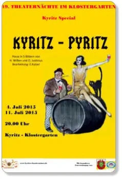 Drei männliche Honorationen aus Kyritz wollen es einmal so richtigin Berlin “krachen” lassen und inszenieren einen großen Schwindelum dort hin zu kommen. Doch ihre Frauen entdeckten den Betrug, reisen ihren Männern hinterher und quartieren sich im selben Hotel wie sie ein.Zu allem Übel sind aber auch dort drei heiratswütige Männer aus Pyritzeingetroffen .... und aus dem Wortspiel “Kyritz - Pyritz” entstehen dieunmöglichsten Verwechslungen, die zur großen Belustigung derZuschauer nur mit Mühe aufgelöst werden ...Die Knattermimen entdeckten diese fast vergessene Posse aus dem Jahr1872 und holten sie zurück - dort wo sie auch hingehört:Nach Kyritz an der Knatter!!!!!