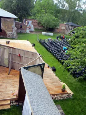Theateraufführungen im Klostergarten zu ermöglichen. Jeder