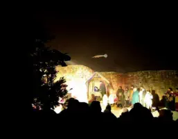 Schauspieler und Statisten beteiligt sind. Maria und Josef kommen dabei natürlich mit einem Esel, die Hirten mit